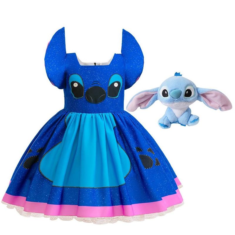 Girl Stitch Cartoon Dress Children Stage Performance Fluffy Gown Disney Movie Characters Costume Halloween Stitch Cos Clothes