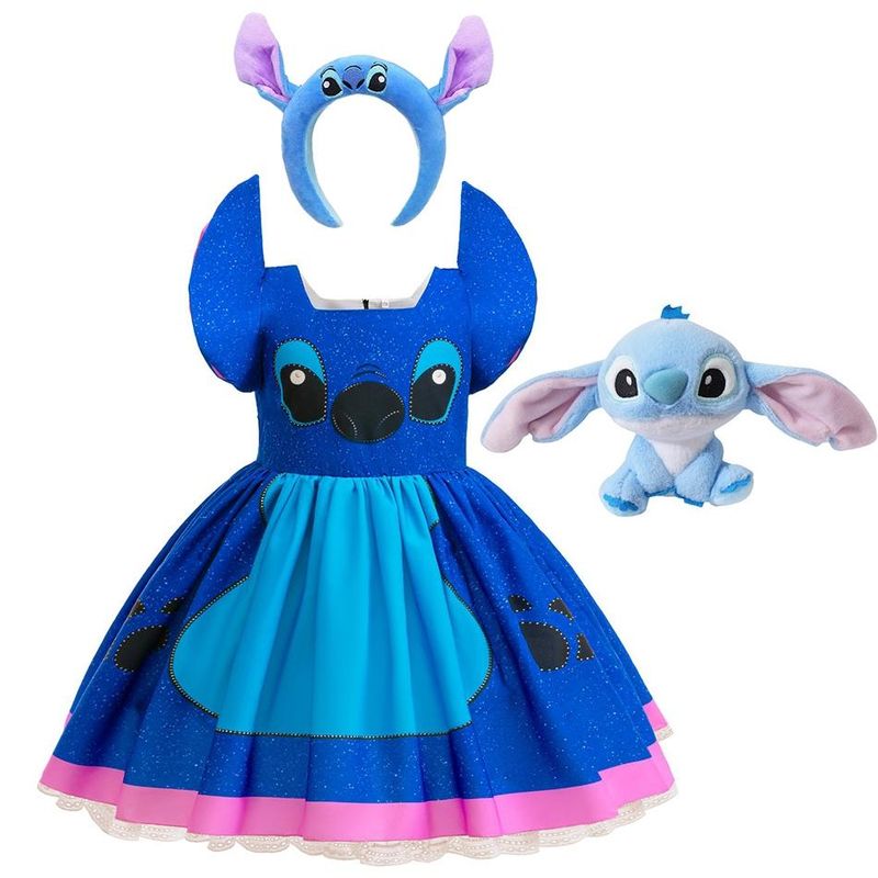 Girl Stitch Cartoon Dress Children Stage Performance Fluffy Gown Disney Movie Characters Costume Halloween Stitch Cos Clothes