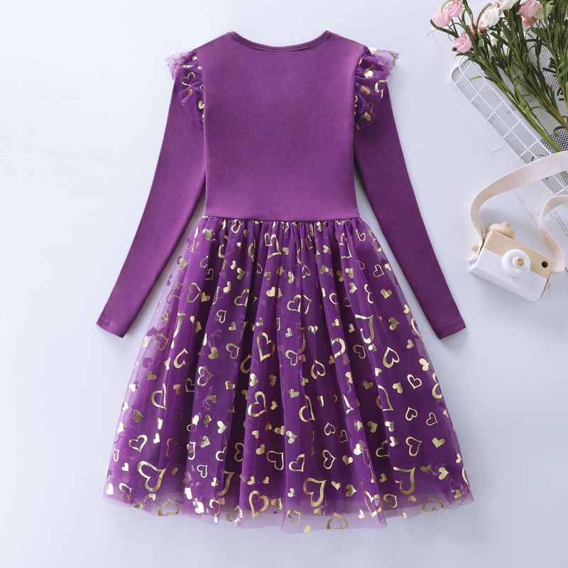 Girls' Autumn Long Sleeve Mesh Cartoon Unicorn Dress LH1696