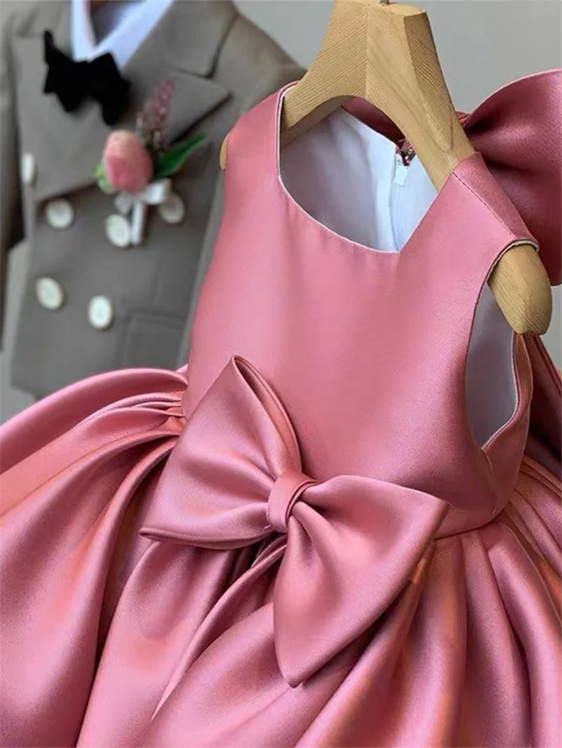Girls Bow Princess Dresses Kids Baptism Evening Tutu Baby Birthday Party Christening Gown Ball Children Clothes Vestidos 1-8Y