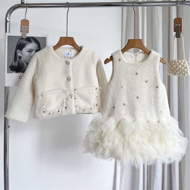 Girls Clothing Sets Winter Kids Girl Sweet Faux Fur Coat and Dress 2pcs Clothes Suit Children Girl Princess Warm Clothes 3 5 8