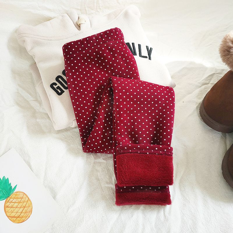 Girls Cotton Dot Print Leggings Autumn Winter Kids Fleece Warm Pants Baby Girl Slim Plus Thicken Trousers Children Clothes