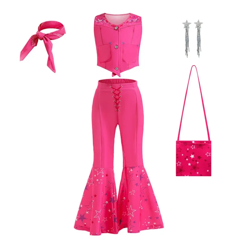 Girls Cowgirl Dress 2-12 Yrs Kids Costume Cosplay Outfit Halloween Apparel Party Vest Top And Flared Trousers Scarf Clothing Set