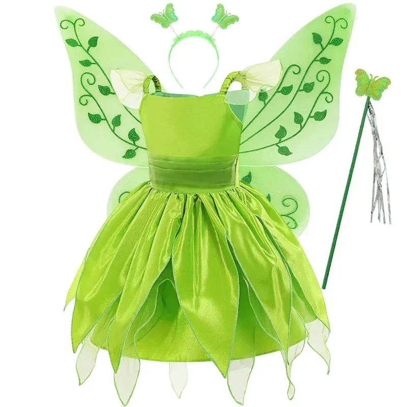 Girls Disney Party Dresses Fairy Tiana Costume for Girl Tinkerbell Children Clothing Princess Elf Birthday Ball Gown Wing Dresse