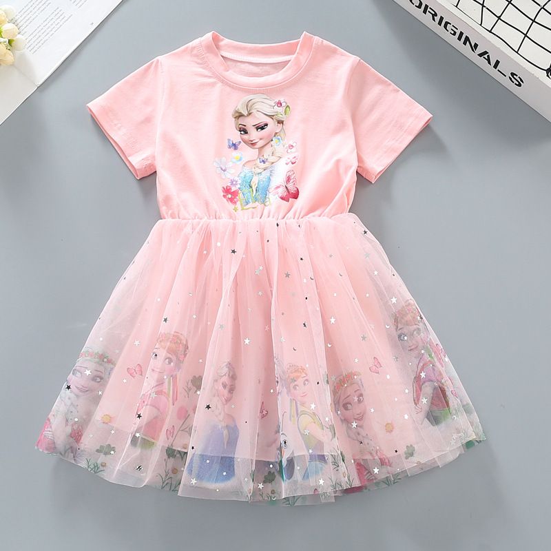 Girls Dress Cartoon Summer Frozen Fashion Children's Elsa Princess Baby Girl Toddler Short Sleeve Cute Party Dresses 3-9Y