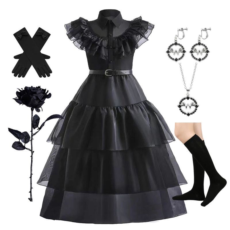 Girls Halloween Cosplay Costume Dress Movie Kids Gothic Dancing Vestidos Party Outfits Dress