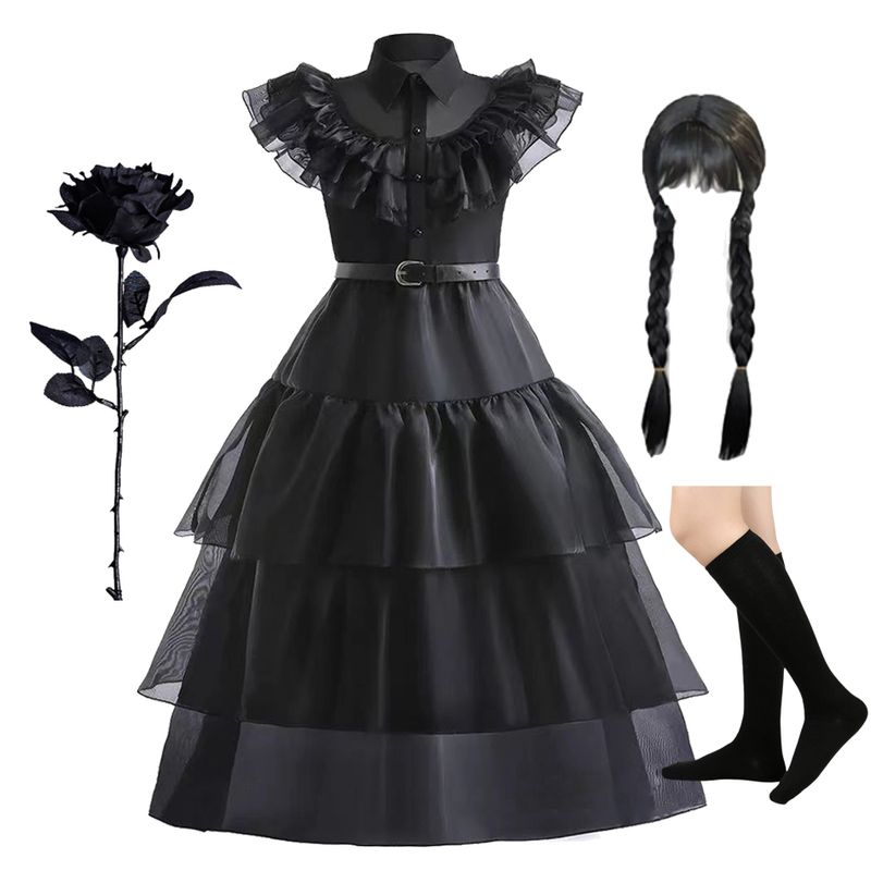 Girls Halloween Cosplay Costume Dress Movie Kids Gothic Dancing Vestidos Party Outfits Dress