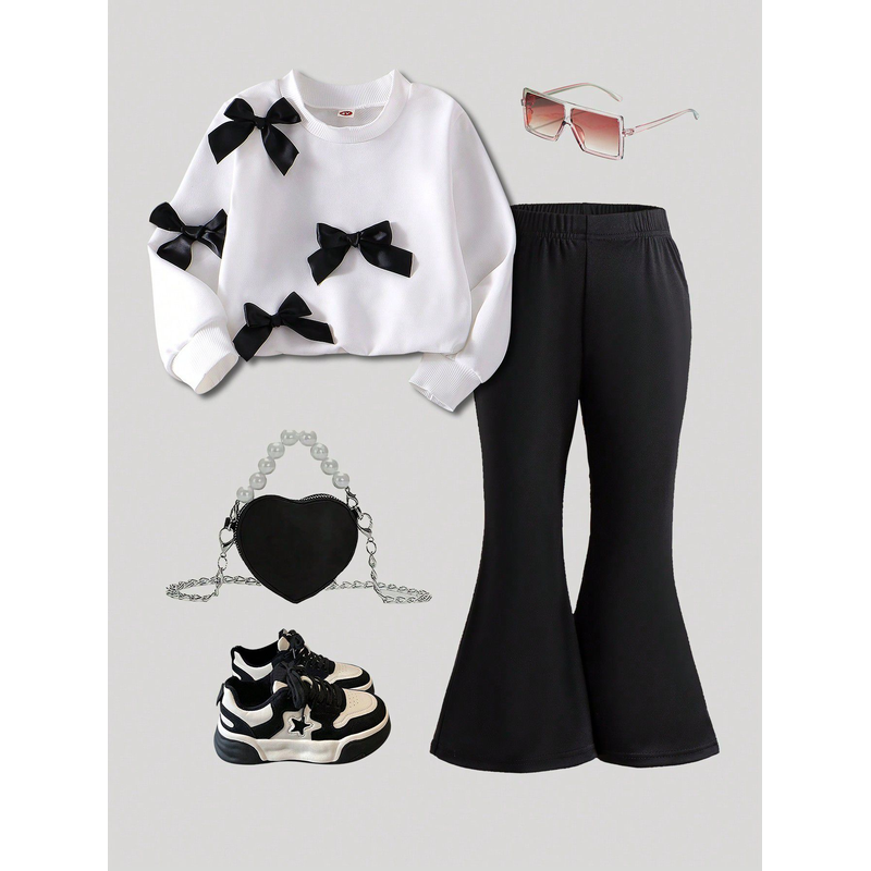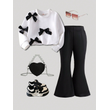 Girls' Long Sleeve Set Autumn and Winter New Girls' Large Lapel Pleated Stripe Top+Bell-bottoms Two Piece Girls' Set