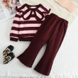 Girls' Long Sleeve Set Autumn and Winter New Girls' Large Lapel Pleated Stripe Top+Bell-bottoms Two Piece Girls' Set