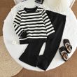 Girls' Long Sleeve Set Autumn and Winter New Girls' Large Lapel Pleated Stripe Top+Bell-bottoms Two Piece Girls' Set