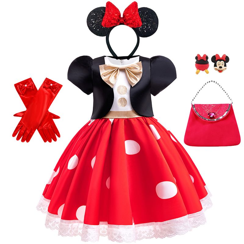 Girls Mickey Minnie Mouse Disney Cosplay Princess Dress Children Polka Dot Bow Suits Kids Halloween Carnival Birthday Costumes