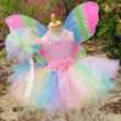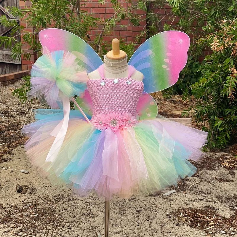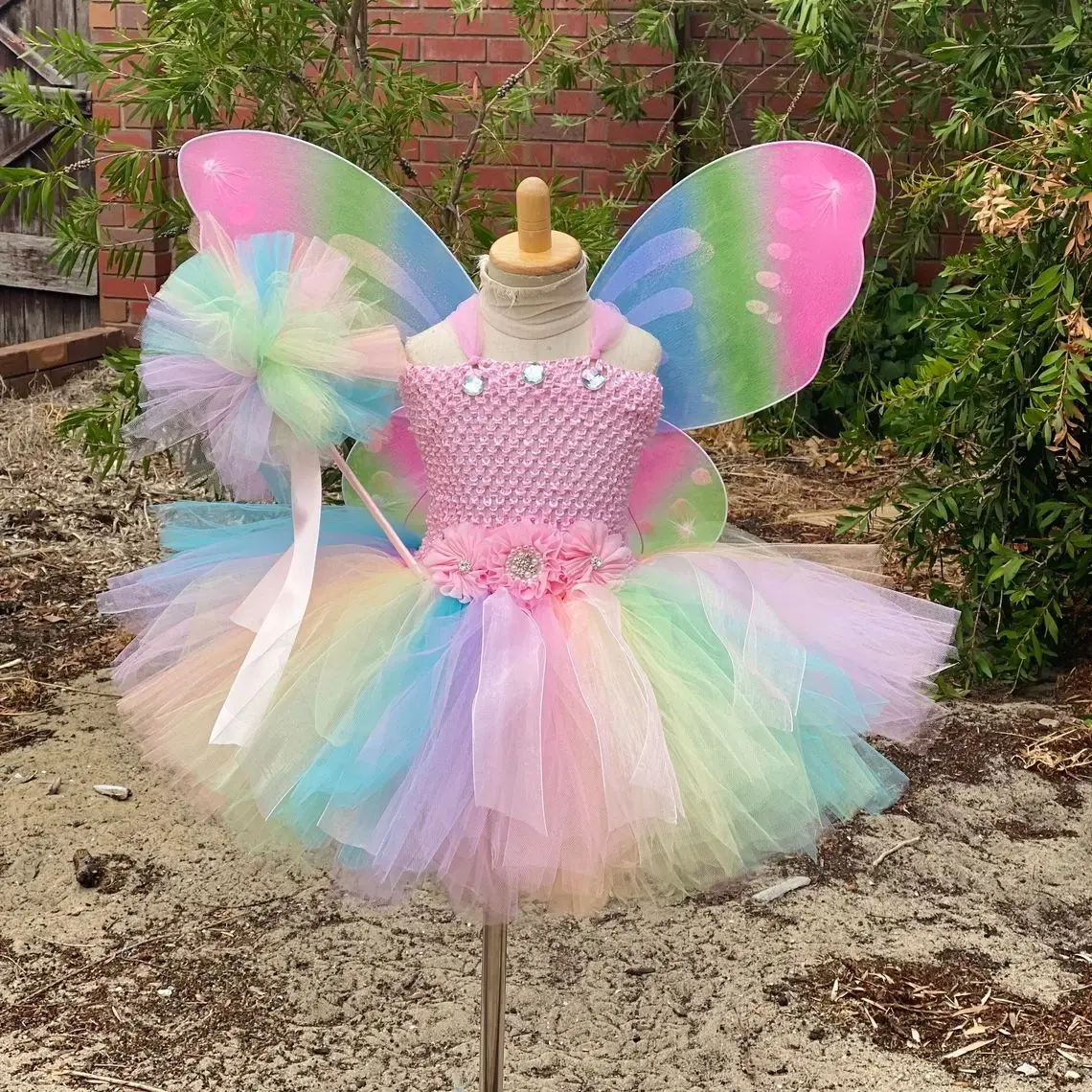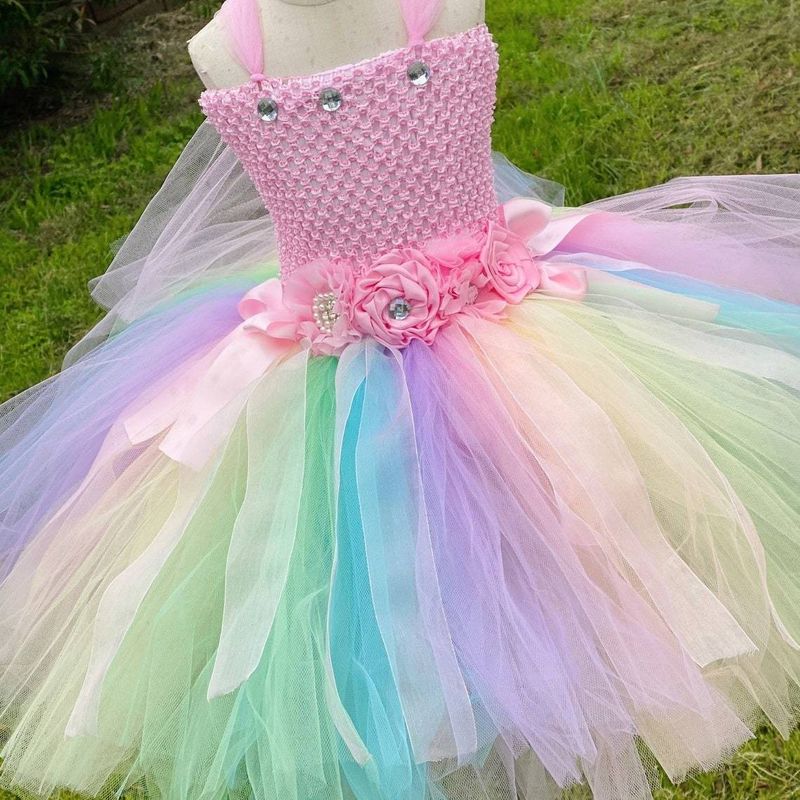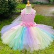 Hot Girls Purple Flower Fairy Dress Kids Fluffy Tulle Dress Children Birthday Wedding Halloween Cosplay Party Christmas Tutus