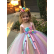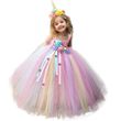 Girls Pastel Unicorn Flower Tutu Dress Kids Crochet Tulle Strap Dress Ball Gown with Daisy Ribbons Children Party Costume Dress