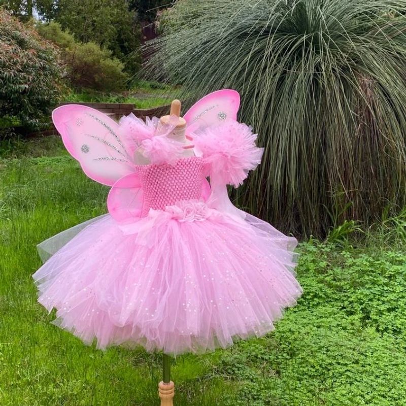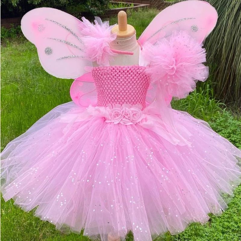Hot Girls Purple Flower Fairy Dress Kids Fluffy Tulle Dress Children Birthday Wedding Halloween Cosplay Party Christmas Tutus