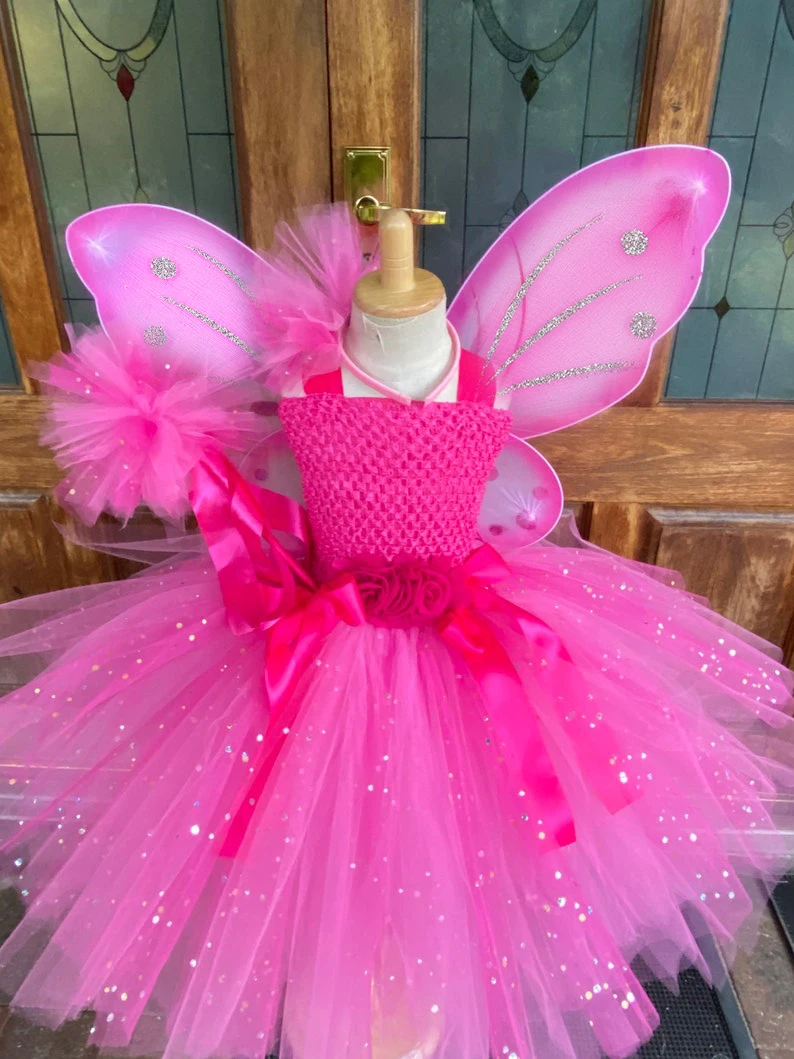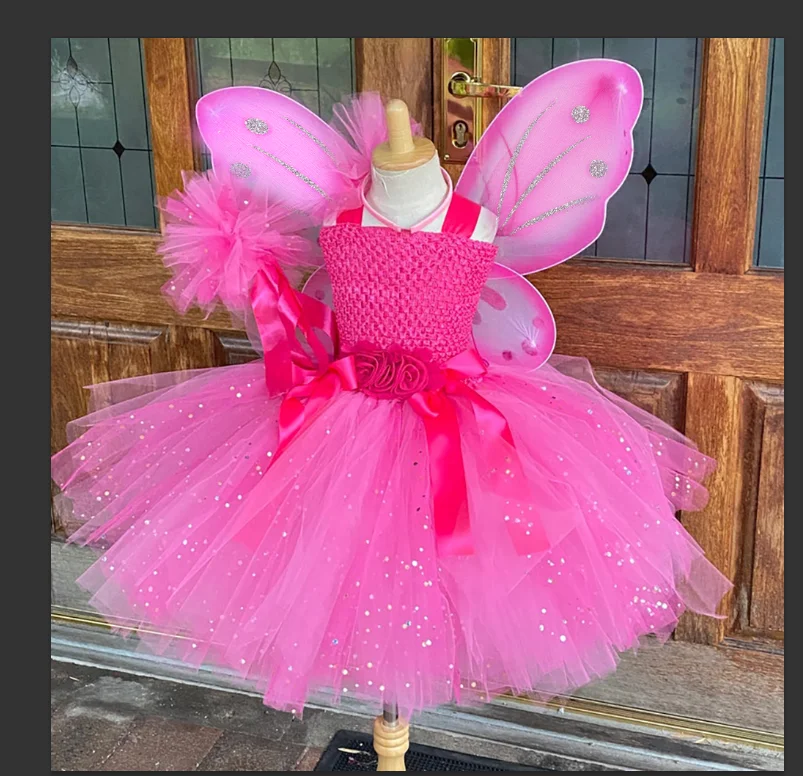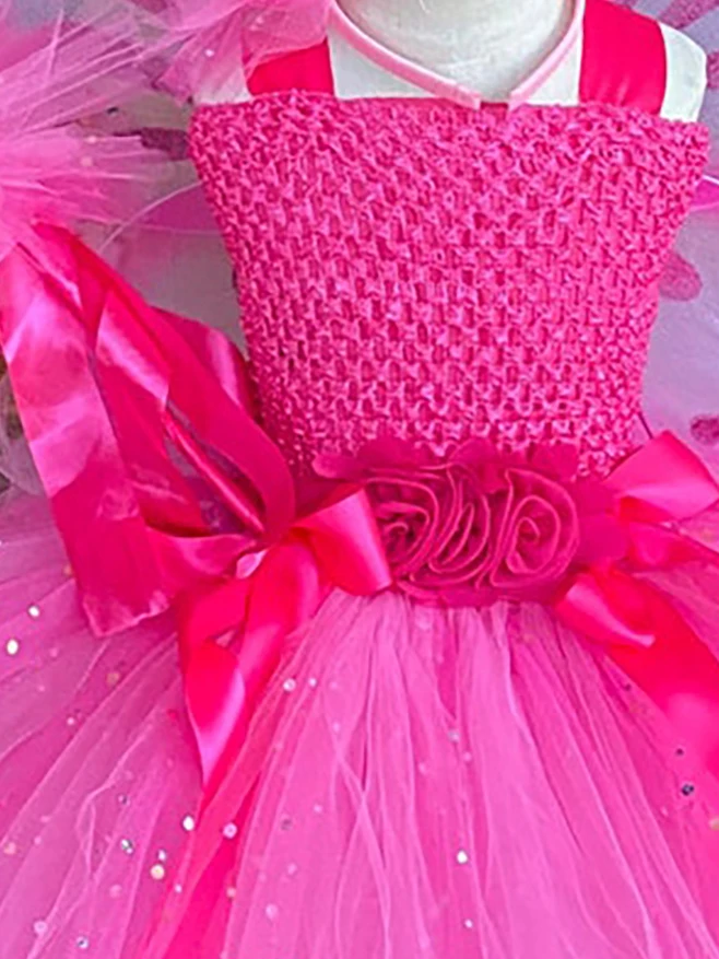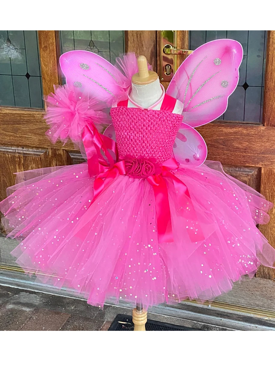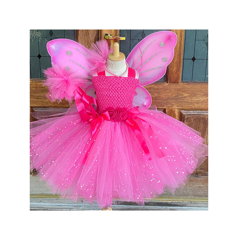 Hot Girls Purple Flower Fairy Dress Kids Fluffy Tulle Dress Children Birthday Wedding Halloween Cosplay Party Christmas Tutus