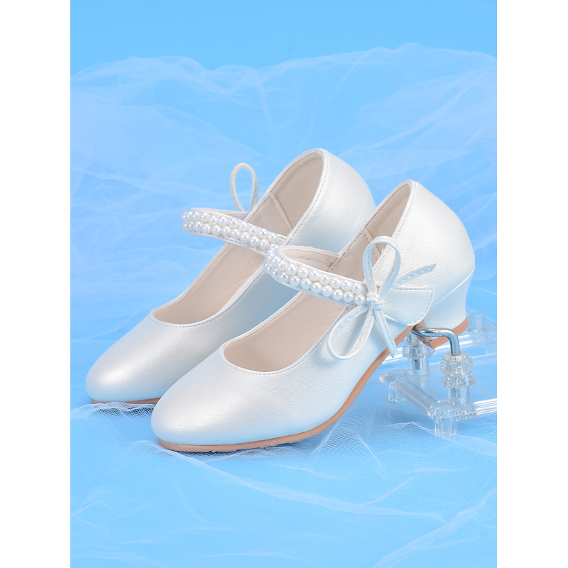 Girls' Princess Fashion High Heels, White, Ideal For Dresses, Performances, Birthday Parties
