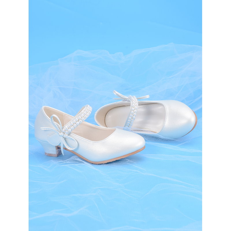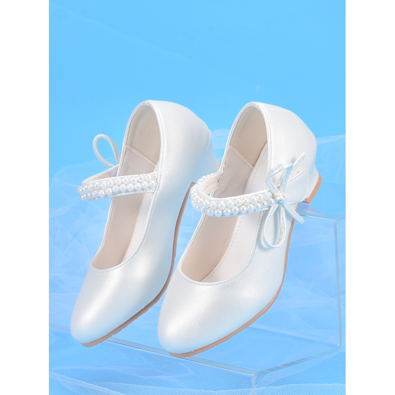 Girls' Princess Fashion High Heels, White, Ideal For Dresses, Performances, Birthday Parties