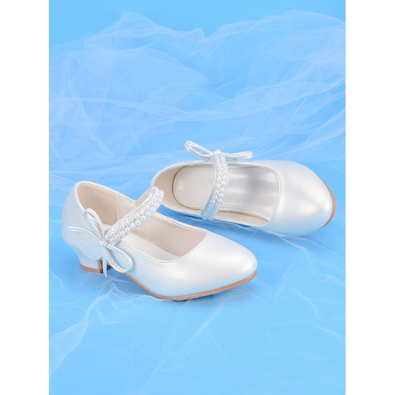 Girls' Princess Fashion High Heels, White, Ideal For Dresses, Performances, Birthday Parties