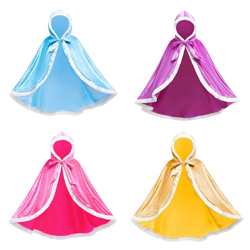 Girls Princess Hooded Cape Children Winter Clothing Cloak Christmas Halloween Party Kids Cosplay Costume Blue Purple Yellow Red