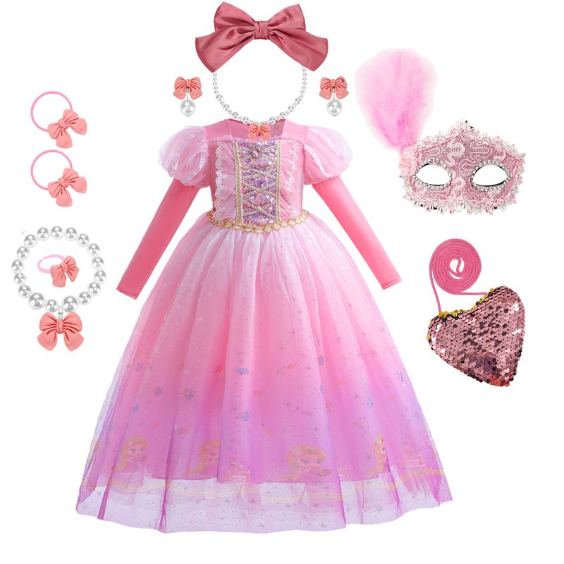 Girls Princess Pink Dress Children Rapunzel Pink Clothing Girls Spring Autumn and Winter Velvet Dress Kids Stage Performs Clothe