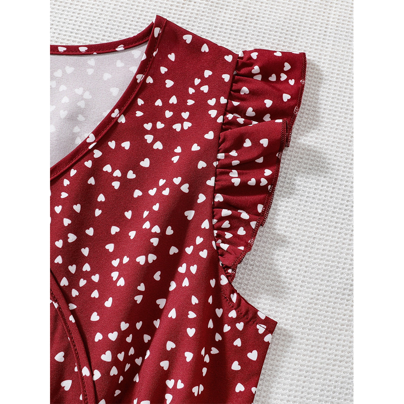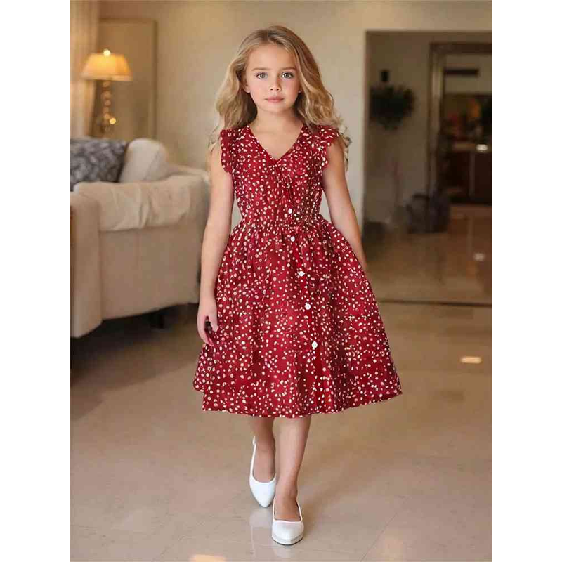 Girls retro red dress with white dots: elegant V-neck design, comfortable fit, suitable for parties and daily life