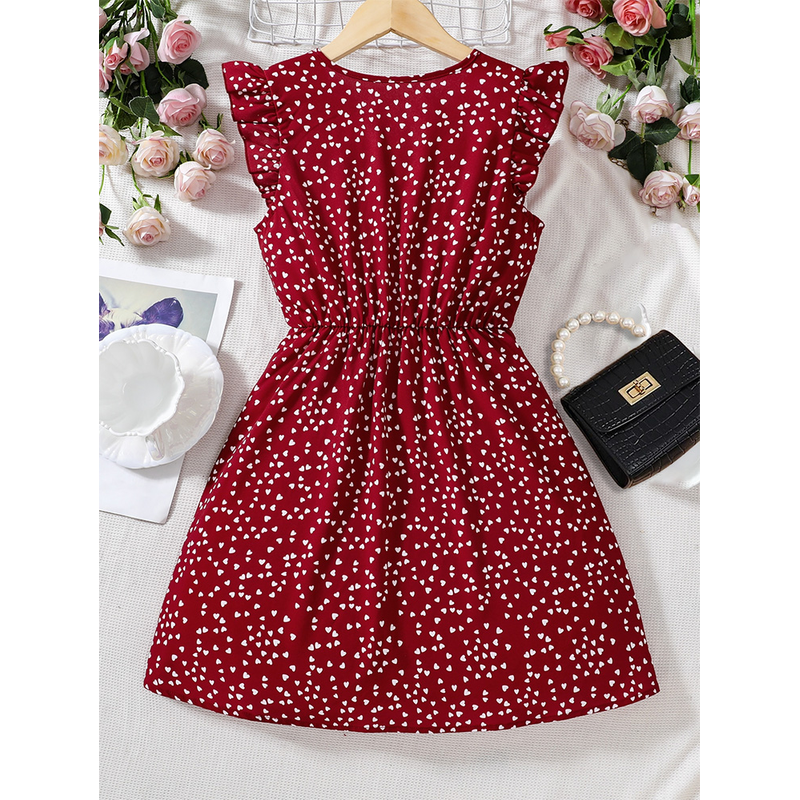 Girls retro red dress with white dots: elegant V-neck design, comfortable fit, suitable for parties and daily life