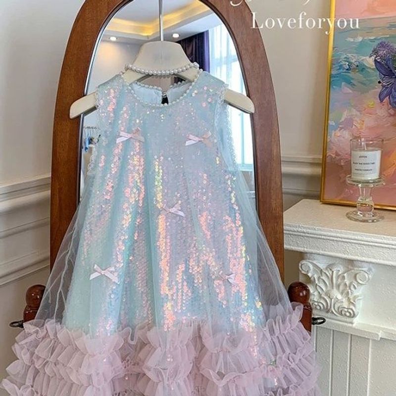 Girls Skirt 2025 Summer New Childrens Clothing Korean Style Girls Baby Bow Glittering Princess Skirt Casual Simple Daily