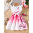 Girls' Spring and Summer Knitted Casual Fashion Round Neck Flutter Sleeve Ruffle Dress with Butterfly Digital Print, Suitable for Holidays, Vacations, Beach, Parties, Gifts