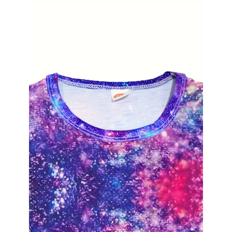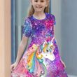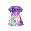 Girls Starry Unicorn Digital Print Round Neck Short Sleeve Party Casual Dress