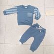 Girls' Striped Stitching Long Sleeve Trousers Suit Blue 6to12M