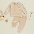 Girls' Striped Stitching Long Sleeve Trousers Suit Pink 2to3T