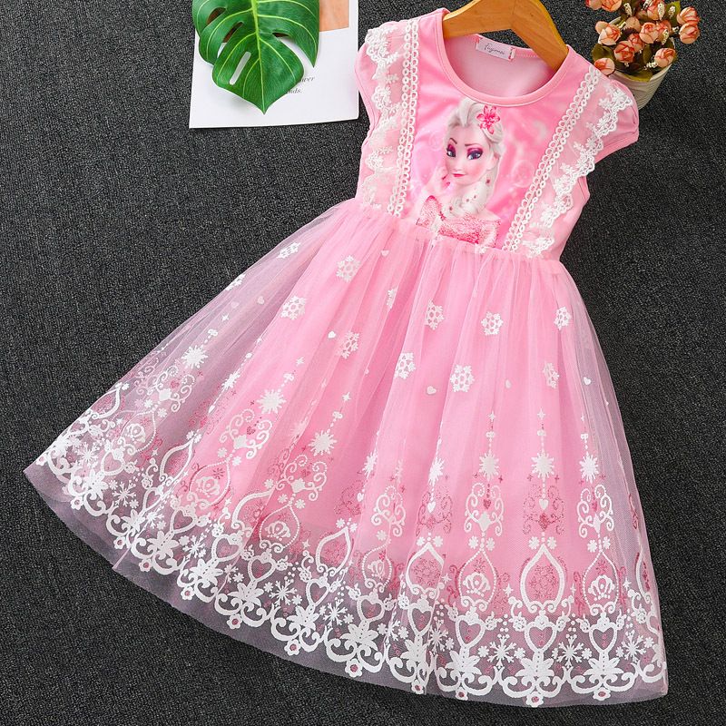 Girls Summer Flying Sleeve Dress Frozen Elsa Princess Party Kids Clothing Baby Dresses Children's Fashion