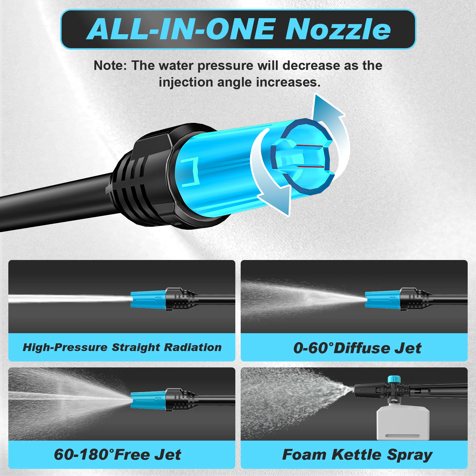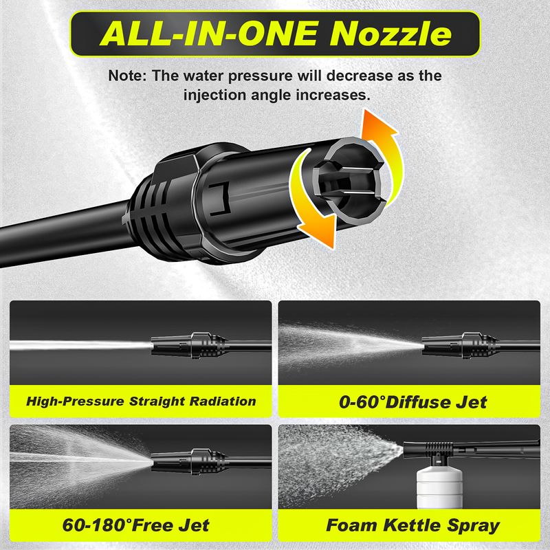 【180°Adjust as Need Nozzle】Unlike other fixed spray angle, changing nozzles is a waste of time and trouble. We match 1-180 degrees adjustable nozzle, you can according to your cleaning needs for spray angle adjustment, need for different cleaning scenarios, ensures they have everything required to achieve optimal cleaning results, so that your cleaning work more easily and efficiently.