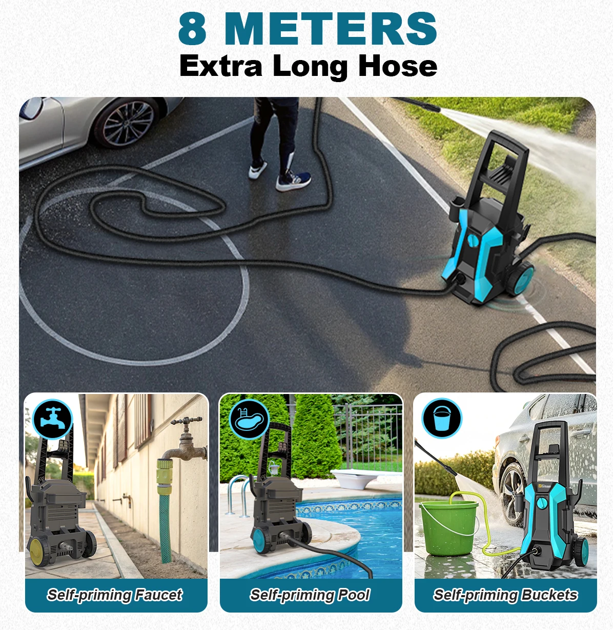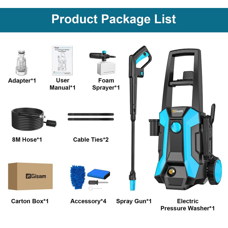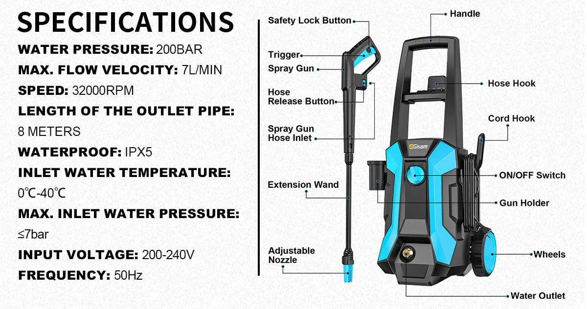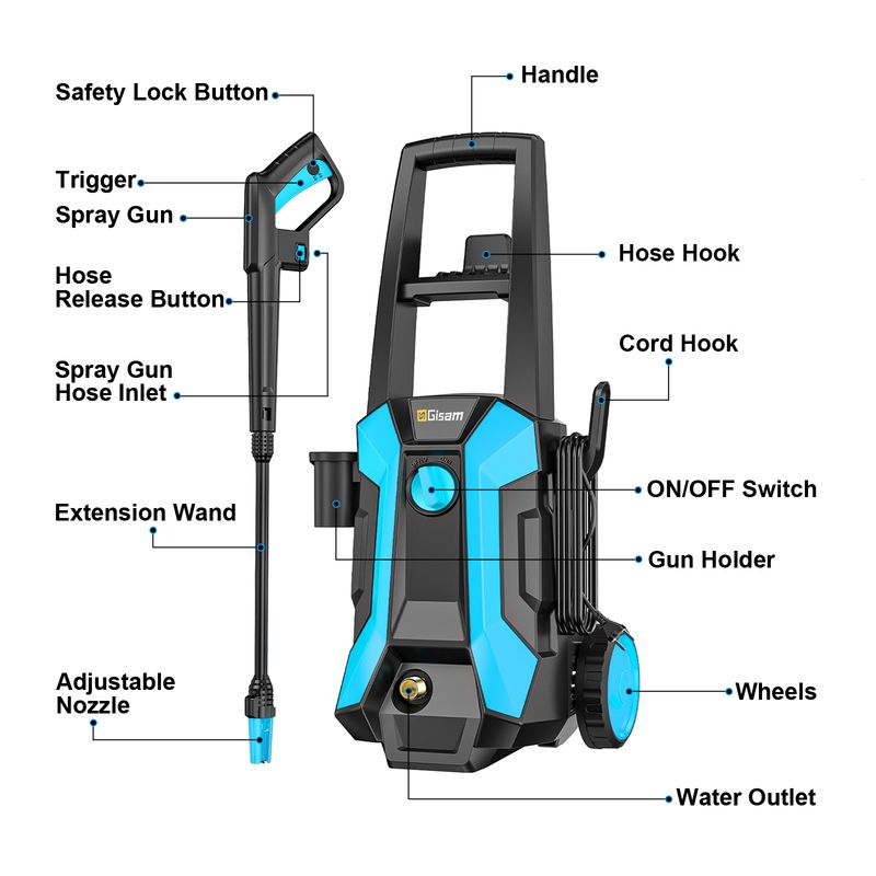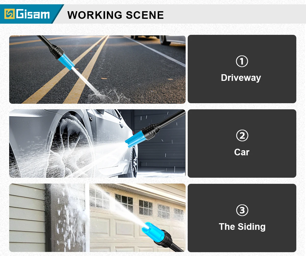 【Total Stop System】:Electric pressure washers total stop system both safety and efficiency. Also prolongs the life of the power washers electric powered by reducing wear and tear. Users will appreciate the convenience and peace of mind that comes with the Full Stop System, making the pressure washers electric powered safer and more user-friendly.