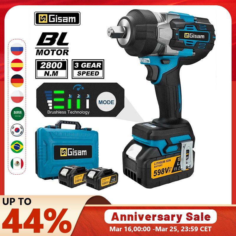 Gisam 2800N.M Brushless Electric Wrench 1/2 Inch Cordless Impact Wrench Electirc Screwdriver Drill For Makita 18V Battery Pin