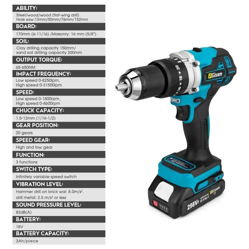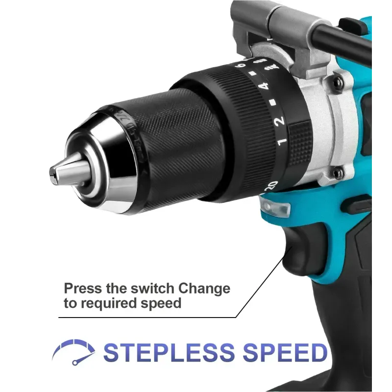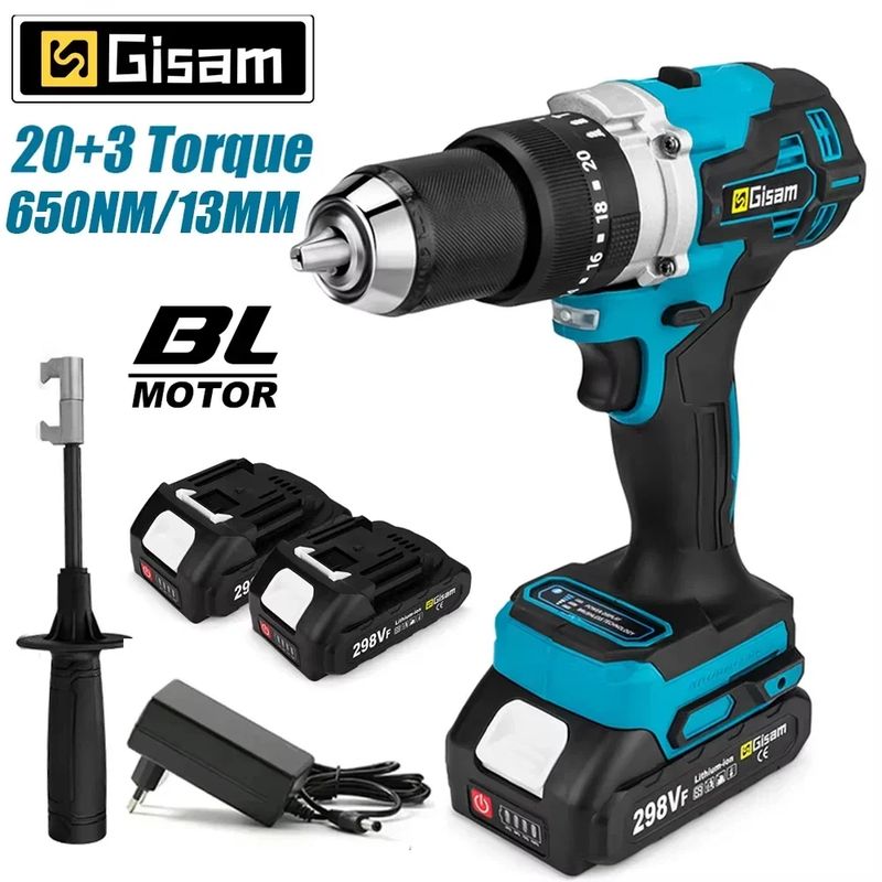 Gisam 650NM Brushless Electric Impact Drill 13MM Cordless Electric Screwdriver Chuck Driver Tool for Makita 18V Battery Pins