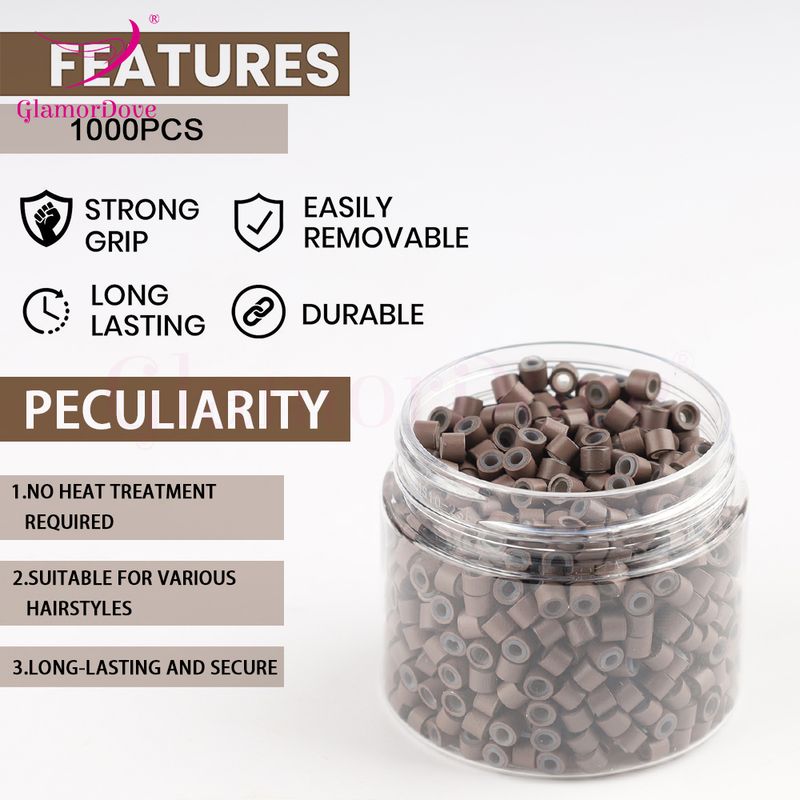 GlamorDove 1000Pcs 4mm Micro Rings For Hair Extensions Microlinks For Hair Silicone Lined Hair Extension Bead Tools Accessories
