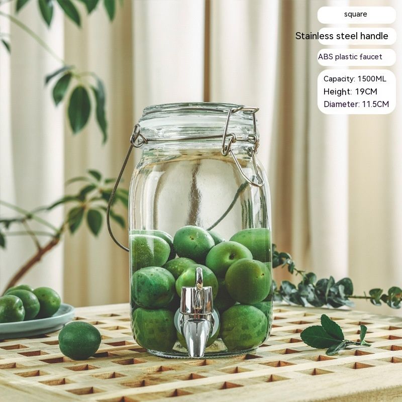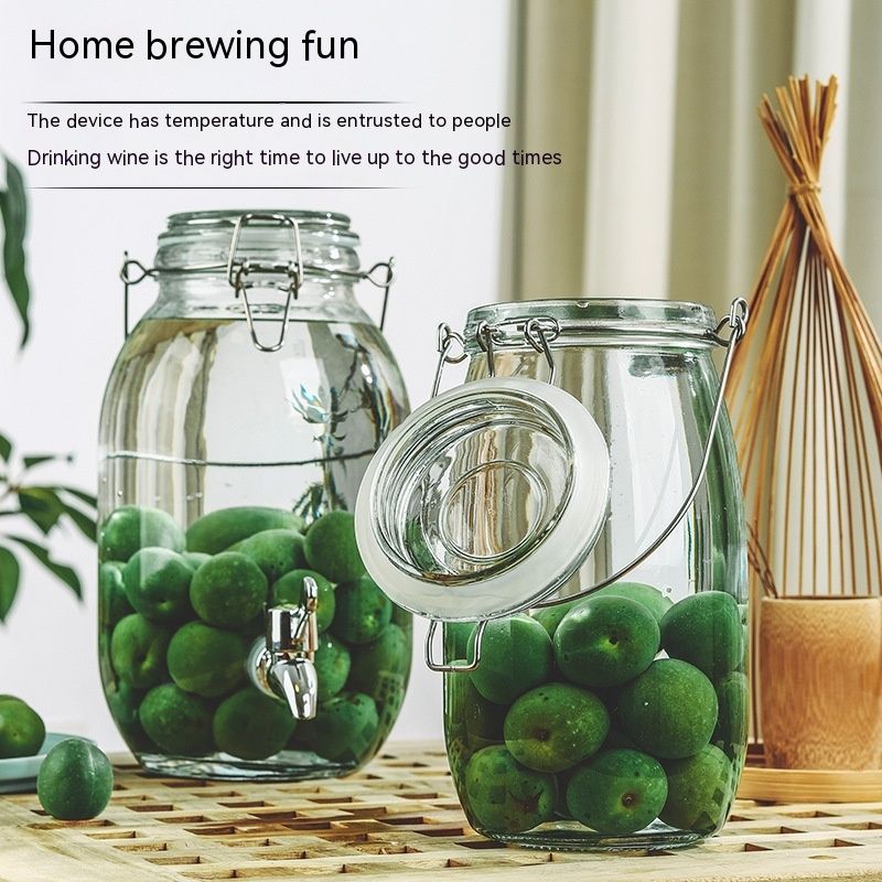 Glass Bottle Plum Waxberry Wine Bottle With Faucet Wine-making Bottle 2000ml Handle Round