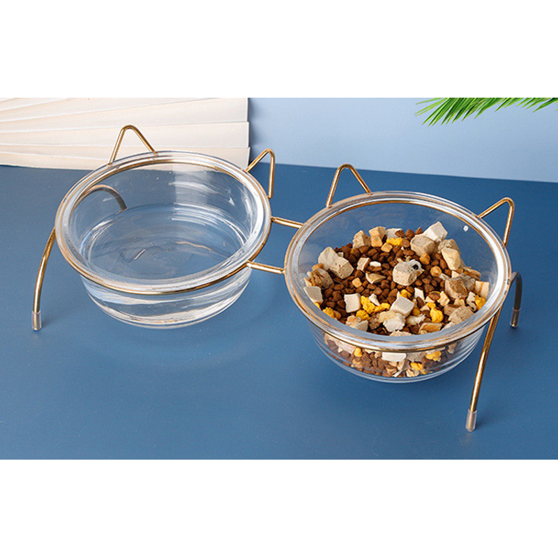 Exquisite Design: The golden bowl rack is made of metal material. The edge of the bowl rack is smooth to protect the pet from scratches. The legs of the bowl rack are covered with non-slip sleeves to prevent the cat bowl from moving.