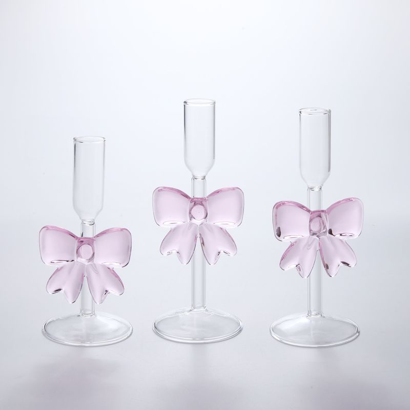 Glass High Leg Light Luxury Large Bow Romantic Candlestick 3pcs