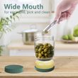 - WIDE MOUTH AND MULTI-PURPOSE:The pickle holder is designed with a wide mouth and has a diameter of 8.5cm/3.4in at the top, making it easier to refill food and clean. Luvan pickle juice separator jar flip also works well with fruit such as maraschino cherries,pineapple tidbits,carrots,apples,and vegetables such as onions ,gerkins,garlic,beets,okra,banana pepper rings,pepperoncinis,mushrooms.