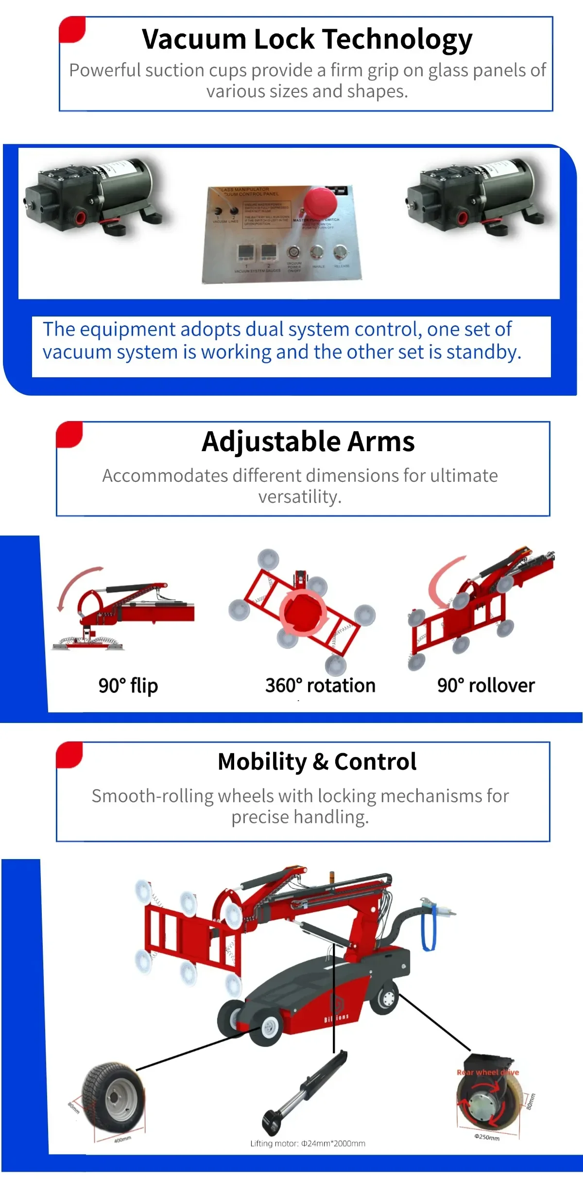 A special equipment used to install glass curtain walls, doors and windows and other products. This product has the advantages of compact structure, easy operation and flexible use, and is suitable for interior and exterior decoration, renovation and maintenance projects of buildings