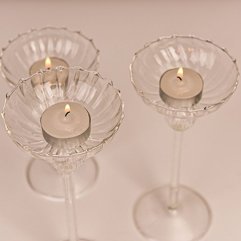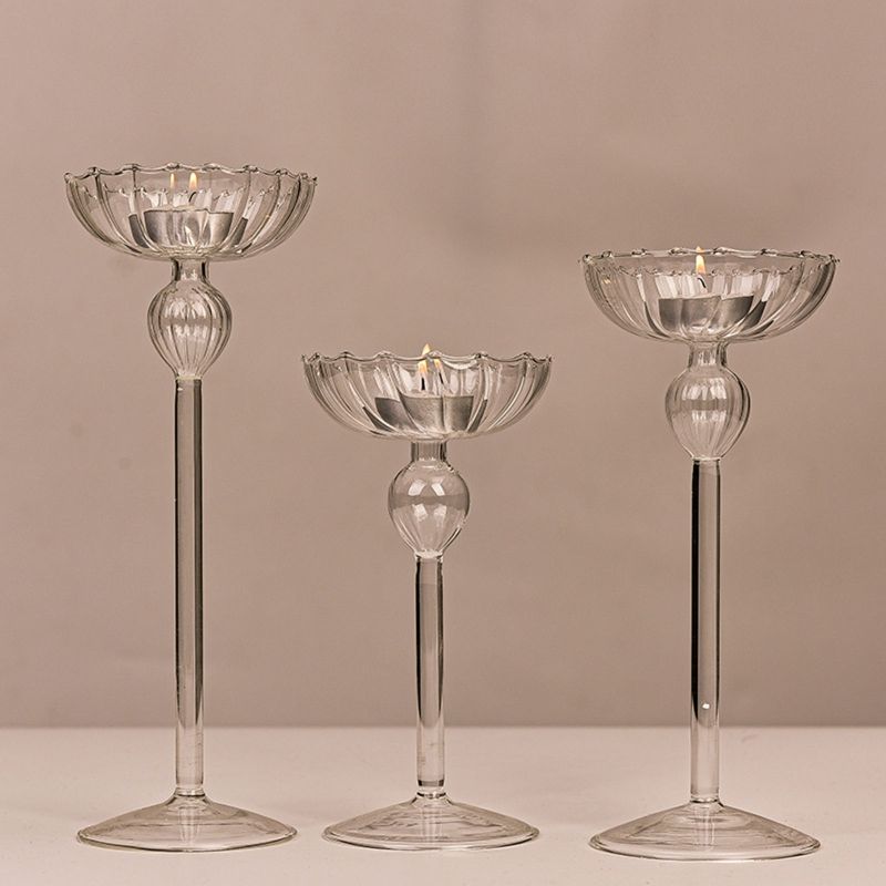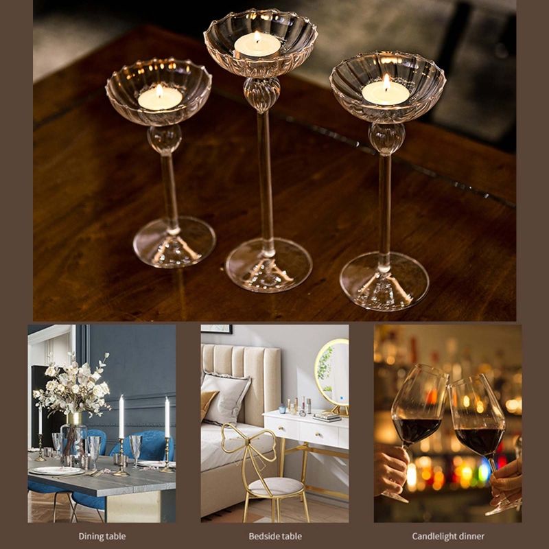 Glass Tall Feet Candlestick Craft Candle Holder Stand Home Decoration for Living Room Bedroom Office Tabletop