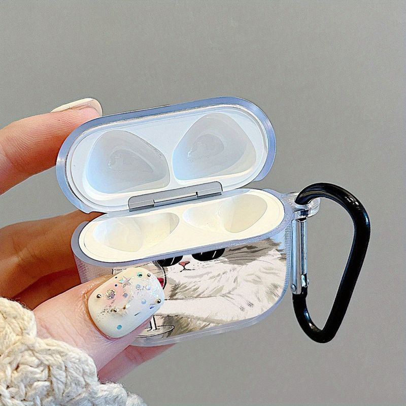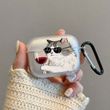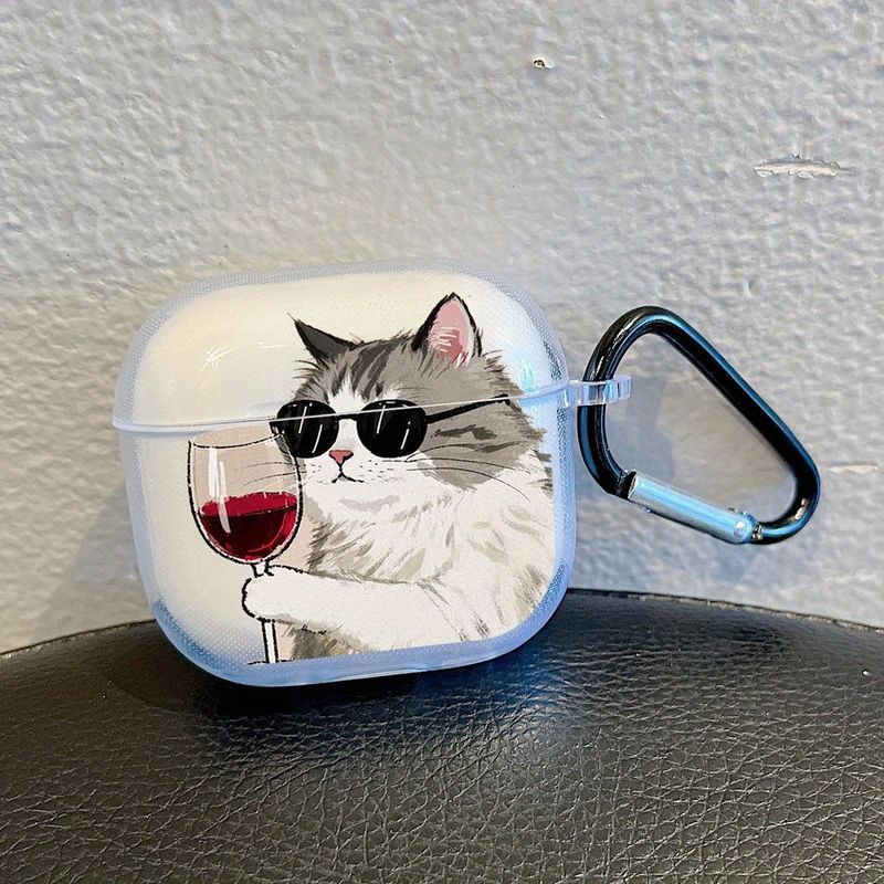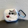 Glasses Cat Drinking Red Wine Pattern for Apple Airpods Pro3/Pro2/Pro Transparent Earphone Case Airpods 1/2/3/4 Protective Cover