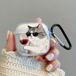 Glasses Cat Drinking Red Wine Pattern for Apple Airpods Pro3/Pro2/Pro Transparent Earphone Case Airpods 1/2/3/4 Protective Cover