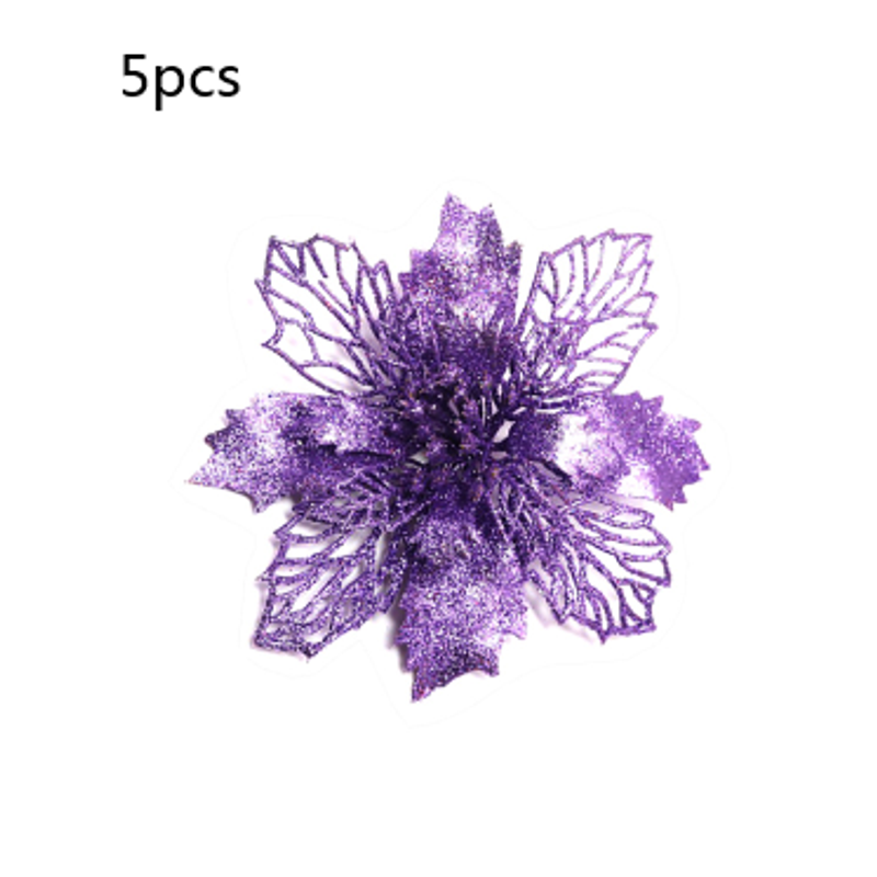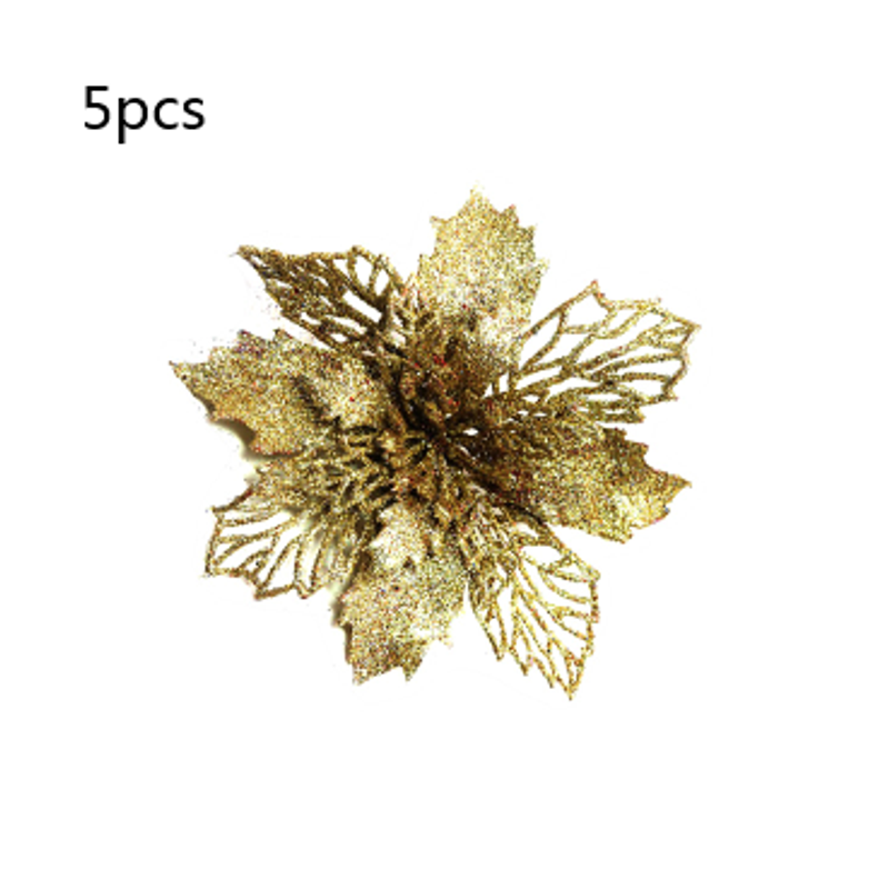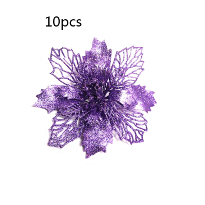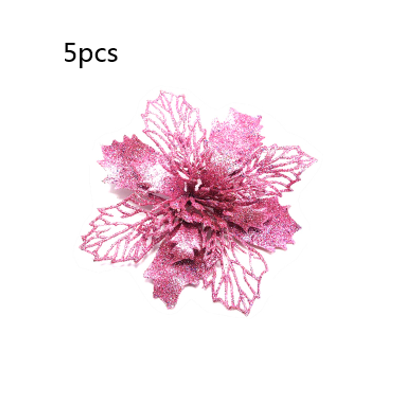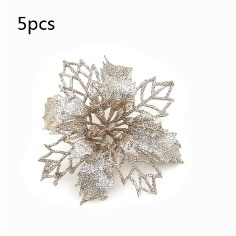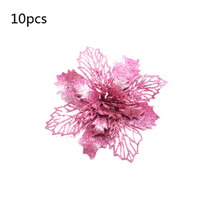 Glitter Artifical Christmas Flowers Christmas Tree Decorations For Home Fake Flowers Xmas Ornaments New Year Decor Light green 10cm