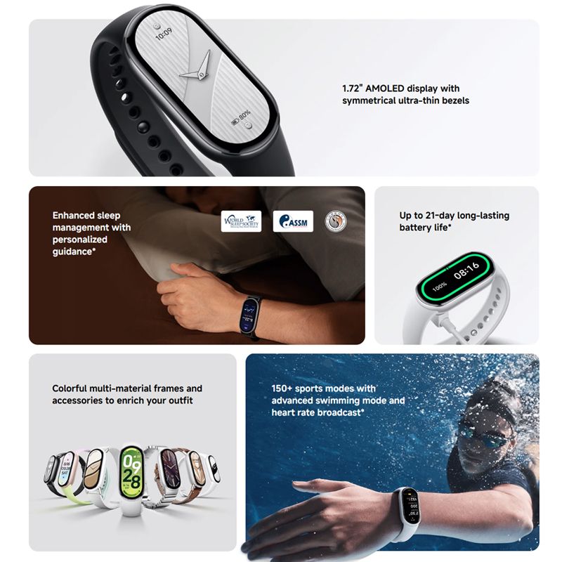 Global Version Xiaomi Smart Band 10 Bracelets 1.72" AMOLED display Blood Oxygen Fitness Tracker 150+ sports modes Smart band