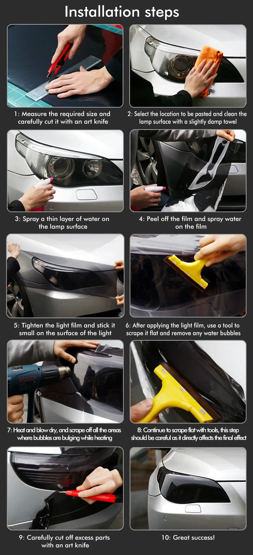 5,This film can be used to change the color of your car's headlights/taillights/foglights, which is very personalized.