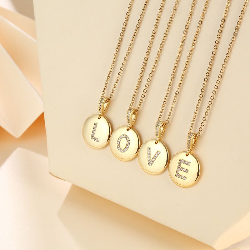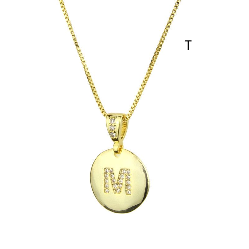 Glossy Diamond Necklace Women's Simple Zircon Alphabet Pendant Gold V