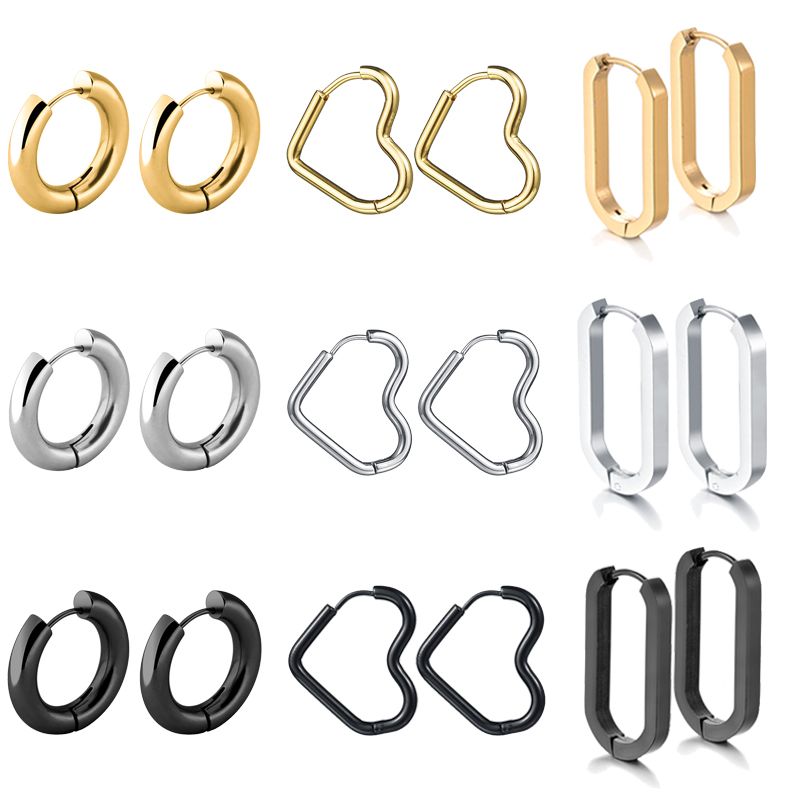 Glossy Stainless Steel Hoop Earrings For Women Men Hip Hop Steapunk Round Oval Heart Black Gold Silver Color Huggie Jewelry Gift